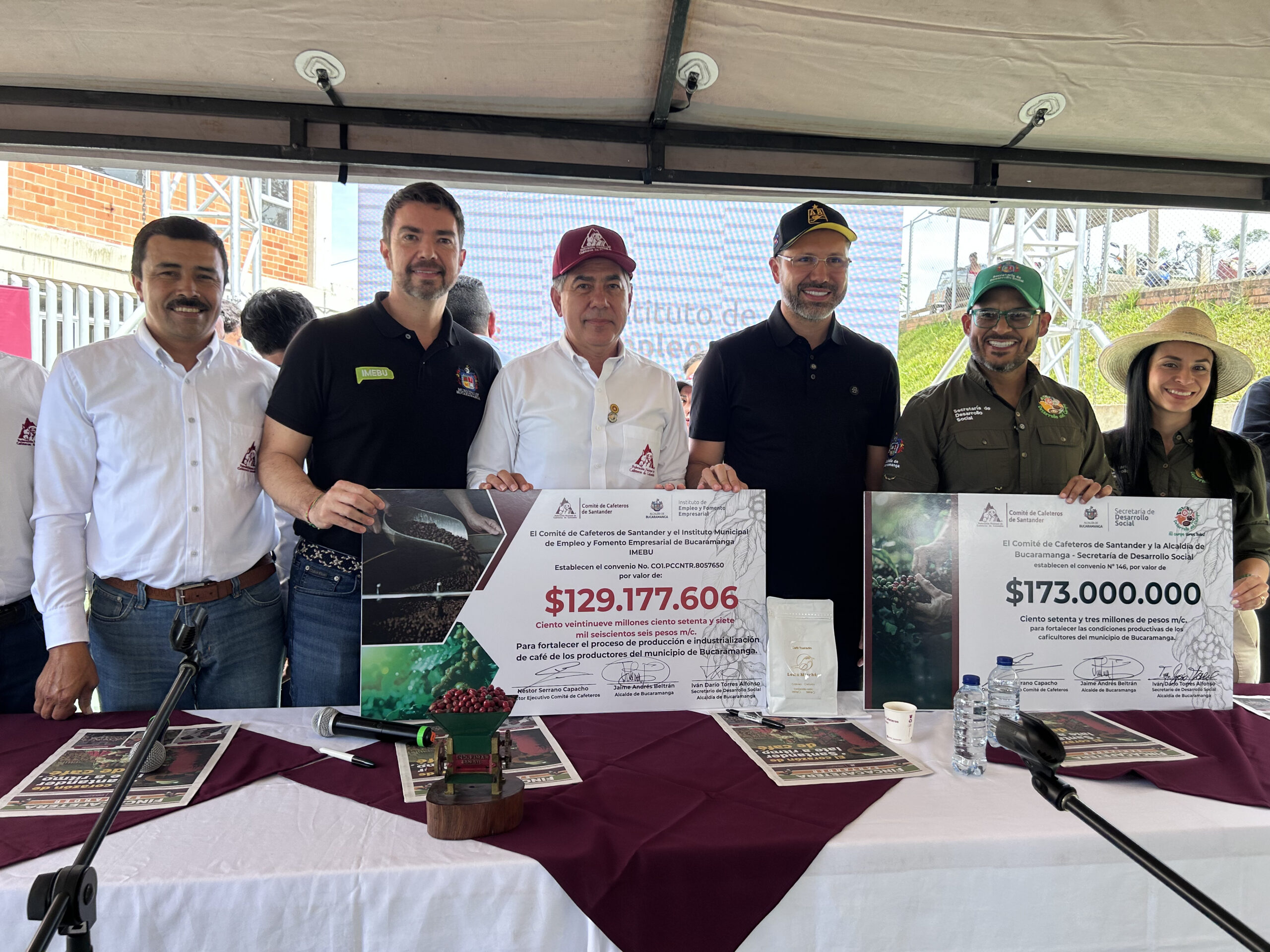 A través del Instituto Municipal de Empleo y Fomento Empresarial – IMEBU y la Secretaría de Desarrollo Social de la Alcaldía, la Federación Nacional de Cafeteros – Comité de Cafeteros de Santander firmó dos importantes convenios con el municipio, un gran paso para fortalecer y potenciar el proceso de producción e industrialización del café en la capital del departamento.