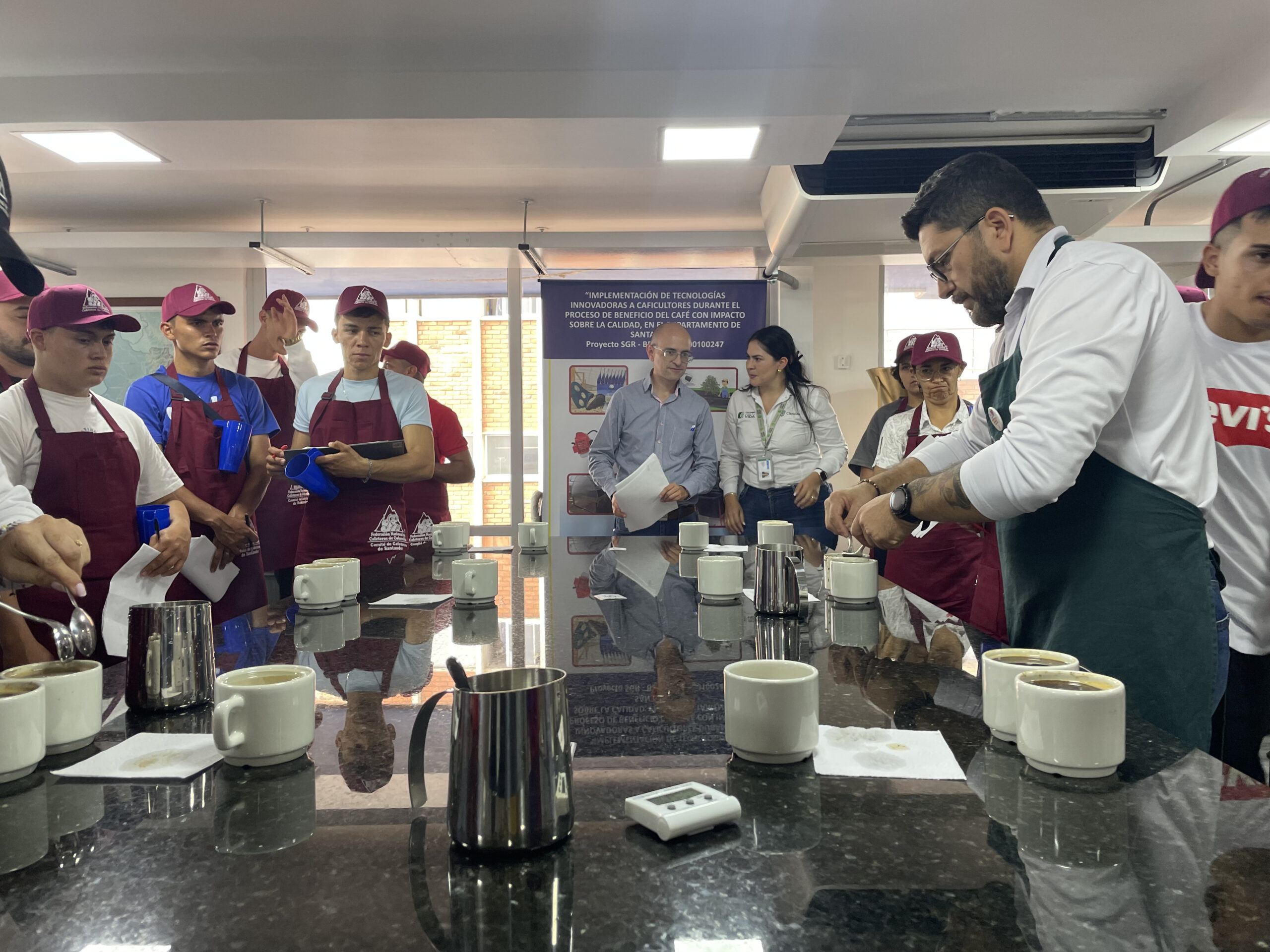 Adicionalmente, la Cámara de Comercio de Bucaramanga realizó capacitación a jóvenes cafeteros en mercadeo, comercialización, competitividad e innovación y por último el Centro Nacional de Investigaciones del Café – Cenicafé, aportó los datos históricos técnicos que permitieron construir las características agroclimáticas del departamento de Santander.