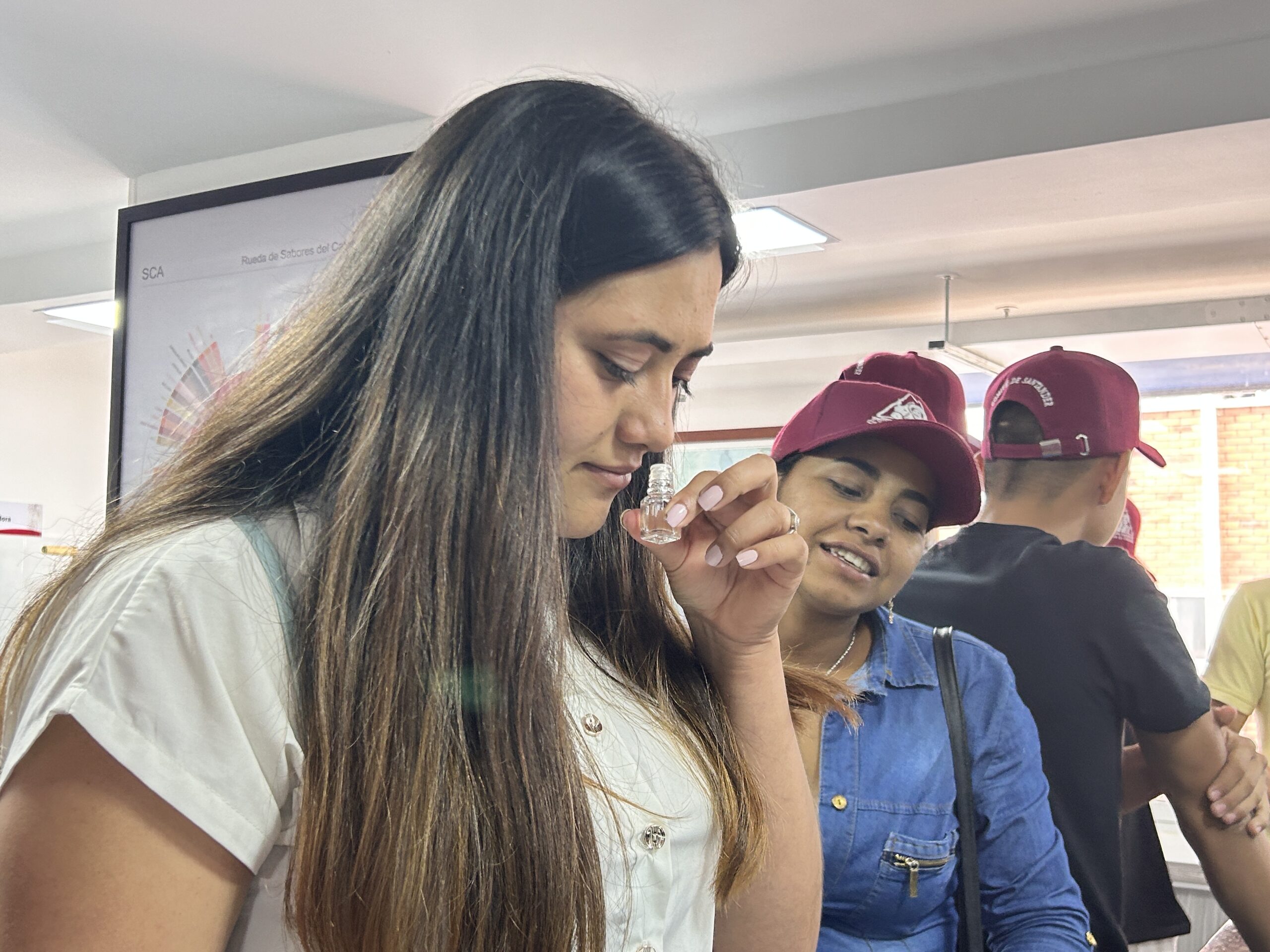 Para el cierre de la capacitación, visitaron el Laboratorio de Calidad de Café, del Comité de Cafeteros de Santander, en donde hicieron una actividad de análisis de factor de rendimiento, nariz del café y catación.