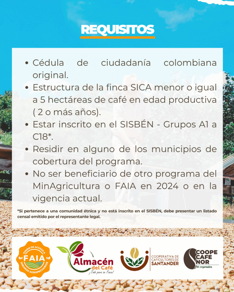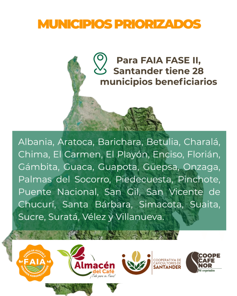 Si está interesado en acceder al programa consulte con el Servicio de Extensión o acuda a las agencias de las Cooperativas de Caficultores de los municipios priorizados en el departamento. Y para el caso de Palmas del Socorro y Charalá, los insumos podrán comprarlos en los almacenes del café del Comité de Cafeteros.