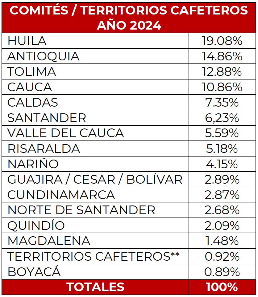Así mismo conserva el sexto lugar en área, pasando de 55.187 hectáreas en 2023 a 55.639 hectáreas de café en 2024.